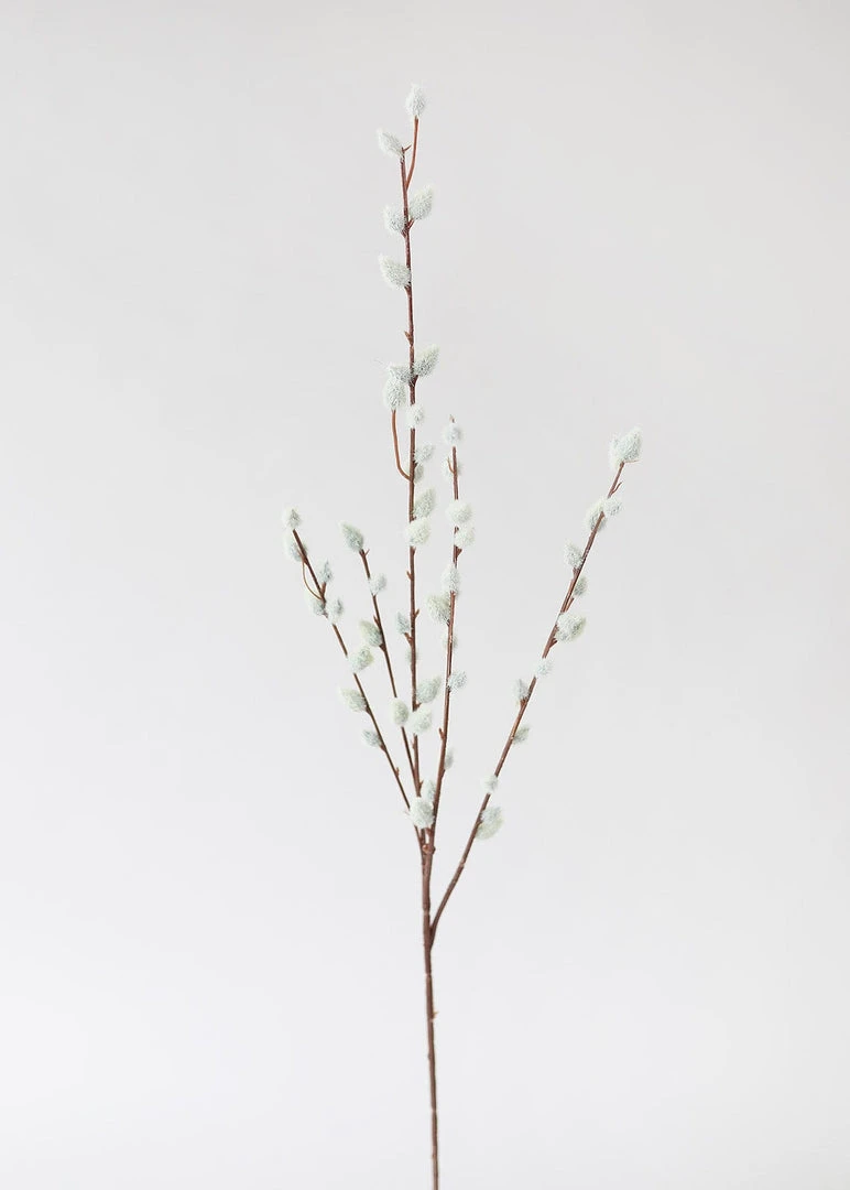 Modern, minimalist, and perfect for any space, these grey artificial pussy willow branches are just what your home decor needs. Style them in a tall branch vase for a simple clean look. These artificial pussy willows feature realistic, fuzzy buds and the fully-wired stem allows for easy shaping to create the look of natural pussy willow banches from every angle.
