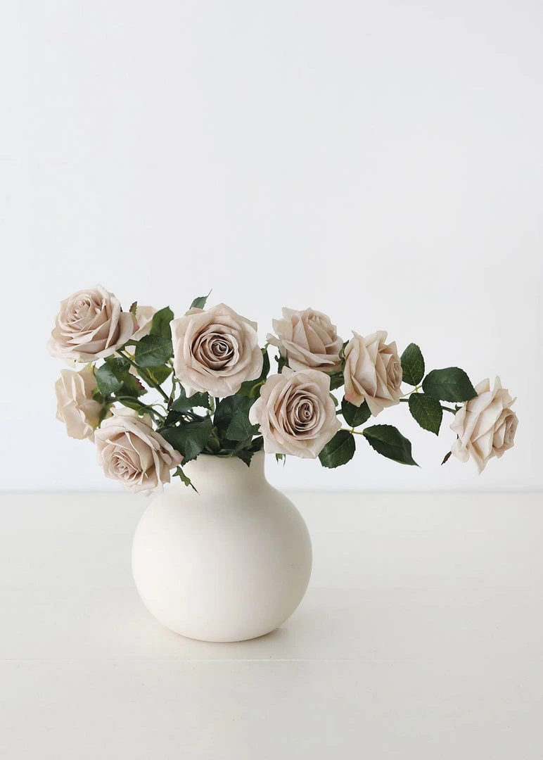 Make this taupe beige artificial rose stem the star of your floral designs to showcase its realistic petals and impressive attention to detail. Simply style these fake roses in a wedding bouquet or a vase to create a perfect fall flower arrangement in an elegant neutral hue inspired by nature.