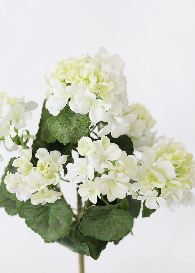 No matter if you are enjoying these white silk geranium flowers indoors or outdoors, they will bring the feeling of nature to your decor. Style this artificial geranium bush in a patio hanging basket or a porch planter to create an effortlessly beautiful design your guests will be stunned to discover is faux!