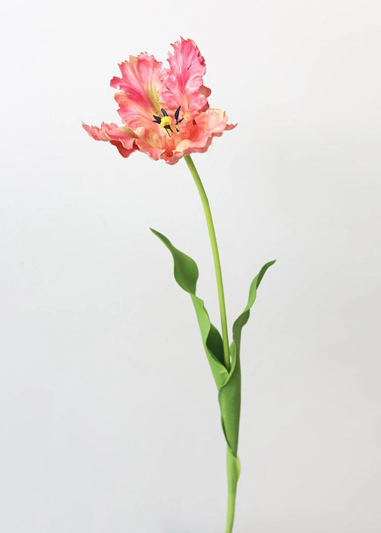 Find high-quality fake spring flowers, like this striking pink green faux parrot tulip stem. Simply style several stems in your vase to showcase a beautiful arrangement of artificial botanicals.