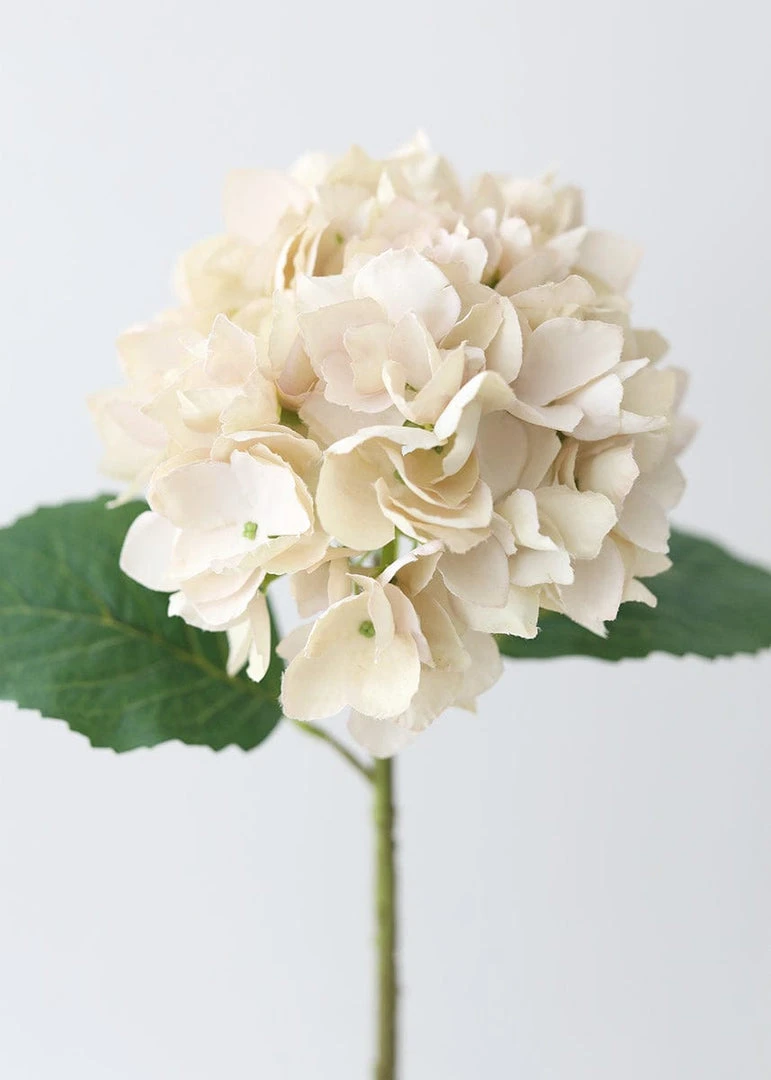 Your faux flower arrangement deserves a stunning focal bloom, and this elegant beige artificial hydrangea is the perfect choice! It has realistic detailing inspired by nature and a neutral hue that adds subtle beauty.