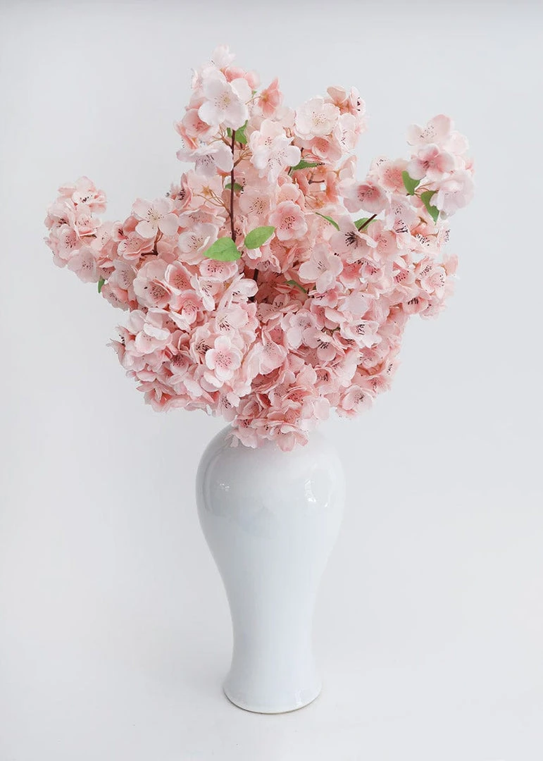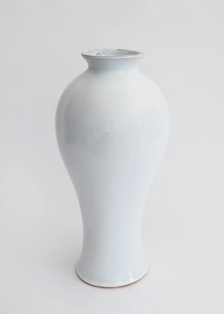 Looking for tall vases? This classic ceramic floor vase is the one for you and a must-have for everyday home decorating. Simply style artificial branches to showcase permanent botanicals that are always in bloom. Large glossy vase is white with a pale beautiful blue-wash.
