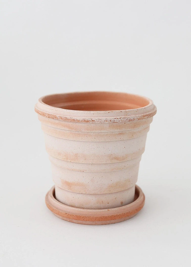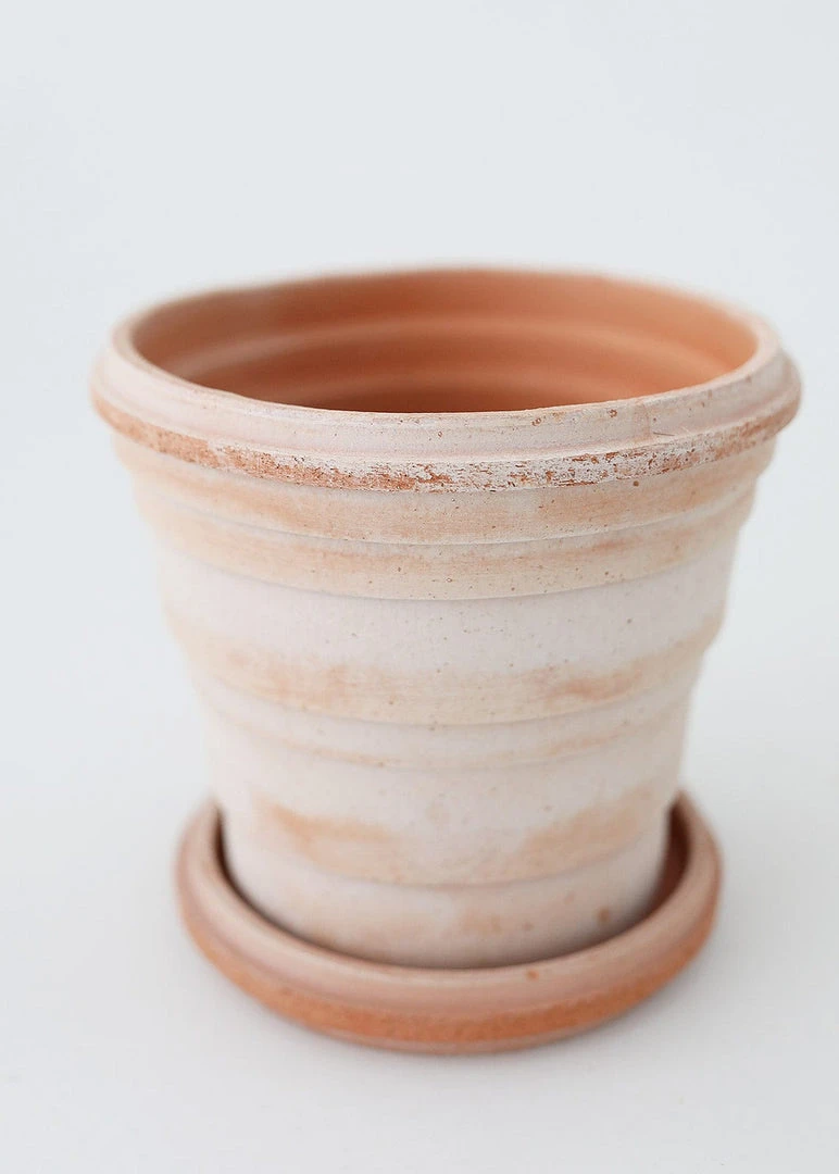 Bergs Potter’s pots are carefully handcrafted to give your live plants the perfect place to grow. The Saturn Planet clay pot comes with a saucer, and is made for your indoor and outdoor gardens. Each planter is handmade and will vary slightly. NOT Frost Proof, store inside during winter months. Whitewash terracotta clay is porous, color will darken when saturated with water.