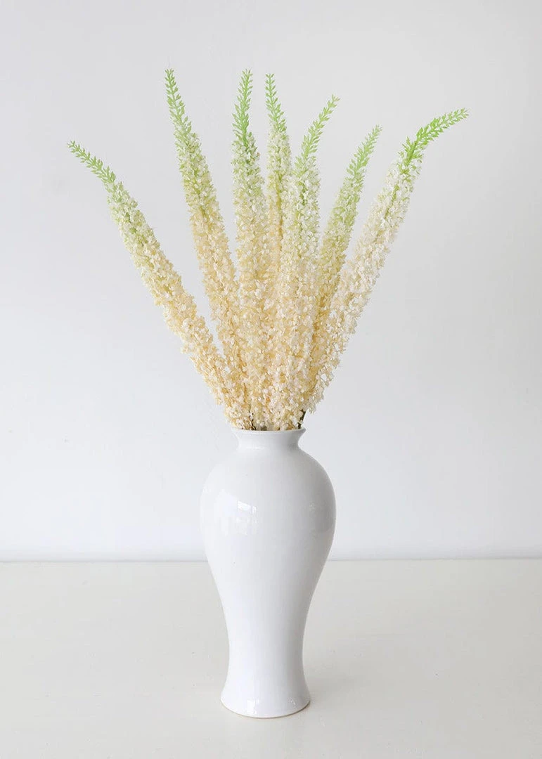 Find artificial wild flowers for your faux floral designs like this stunning cream veronica flower stem. Also known as Culver’s Root and Speedwell, these fake filler flowers offer height and dimension for vase arrangements.