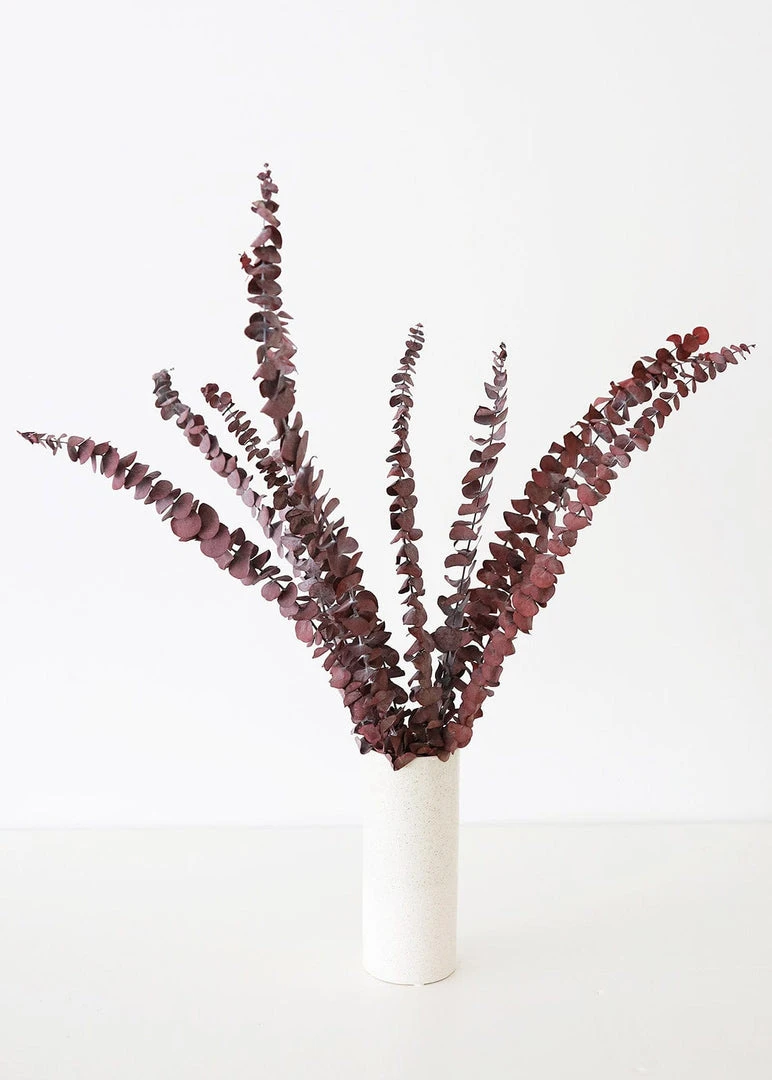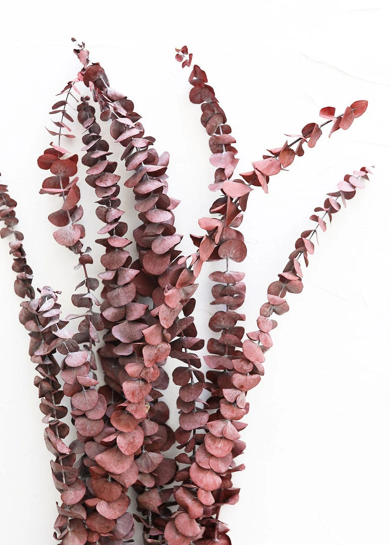 Find natural greenery for your home, like this stunning burgundy preserved spiral eucalyptus bundle. Simply style the leaves in your favorite tall vase to create a fresh look that lasts, or add to dried fall flower arrangements.