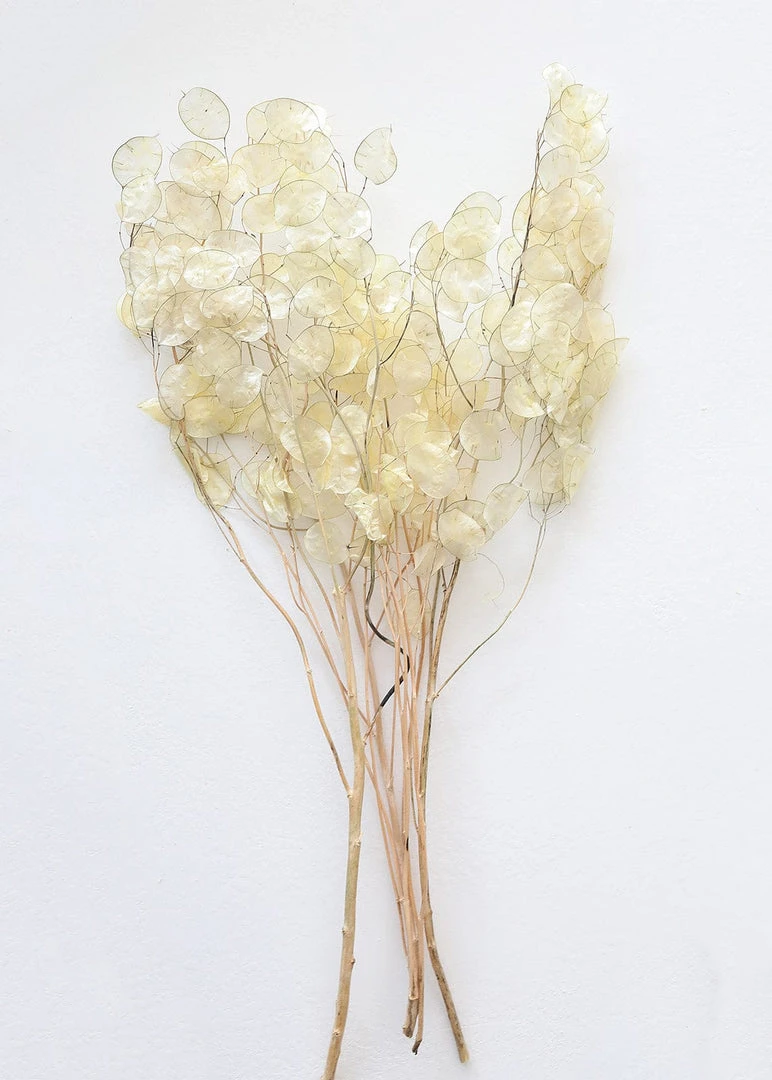 Achieve clean, sophisticated home vase decor or wedding centerpieces with these natural dried lunaria silver dollar branches. They give your design perfect coastal vibes and nature’s touch of whimsy. Natural product, each bundle is unique and color can vary from cream to yellow or a mixture of both.