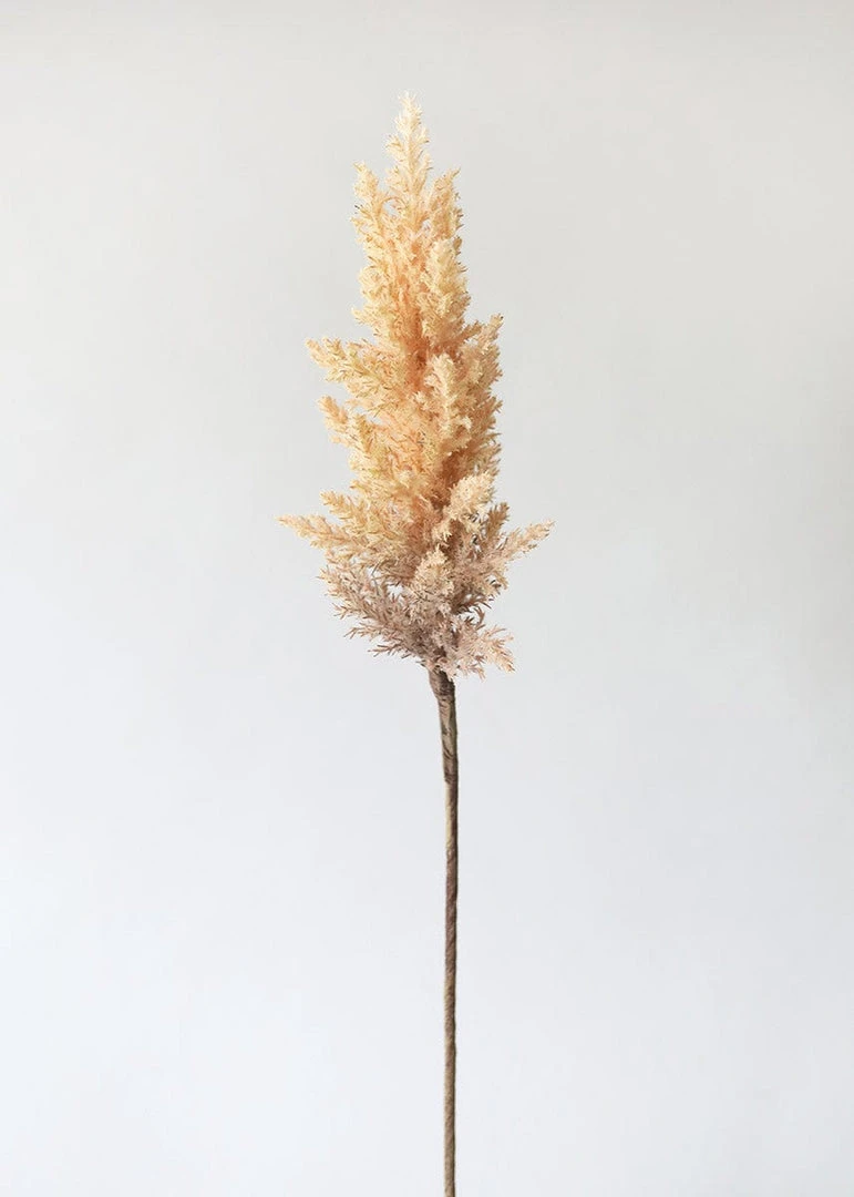 Take a simple approach to fall home decorating with tall, artificial grasses inspired by nature. This perfectly neutral tan fake pampas grass stem is beautiful alone in a vase or styled in an autumn flower arrangement.