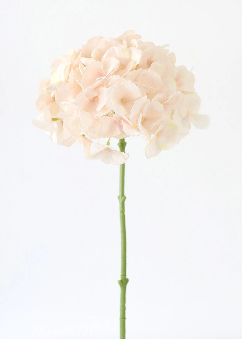Make a statement with oversized artificial flowers, like this lovely soft blush pink hydrangea stem with a jumbo silk bloom. You just need to style it in your favorite bud vase to complete a fresh, trendy look.