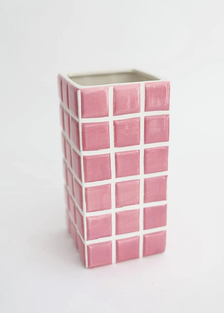 Afloral Pink Dolomite Ceramic Tile Vase – 8.”