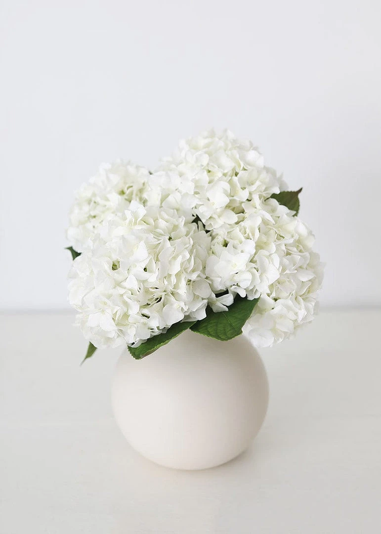 Simple but sophisticated floral styling calls for the most beautiful permanent botanicals like this talc white artificial hydrangea, great for a modern coastal palette or creating a neutral organic modern room. These real-touch flowers give any faux arrangement or bouquet an elevated feeling of a fresh-cut stem that will have lasting enjoyment.