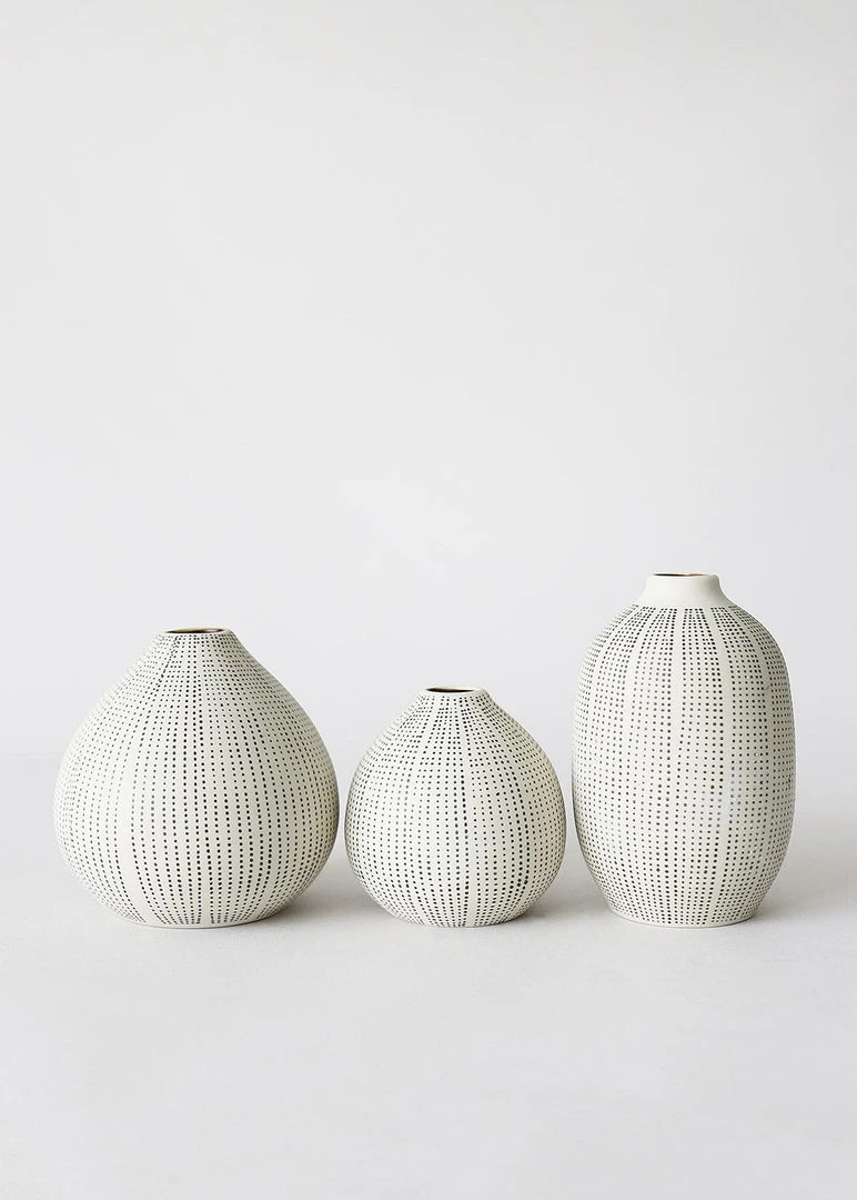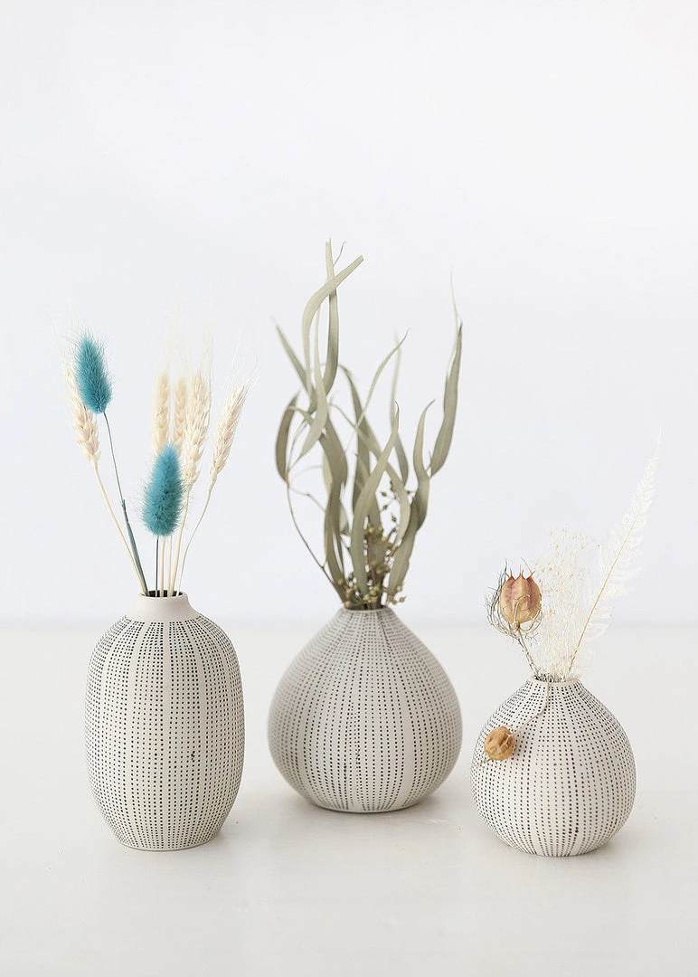Textured stoneware bud vases in black and white are beautiful vessels for your favorite dried flower stems.