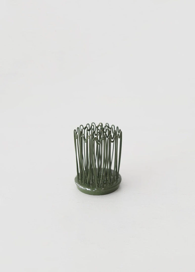 This heirloom floral arranging tool allows you to simply create flower arrangements without a fuss and with no foam. This round hairpin flower frog holder in green has a heavy base and the brass looped pins are bendable and make it easy for you to design from any angle. A lifetime reusable floral tool that will be passed down through the generations of floral admirers in your family. Can be used with fresh and fake flowers. This floral frog hairpin is handcrafted and sturdy to be reused through the generations.