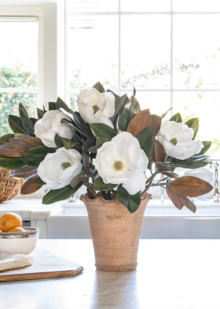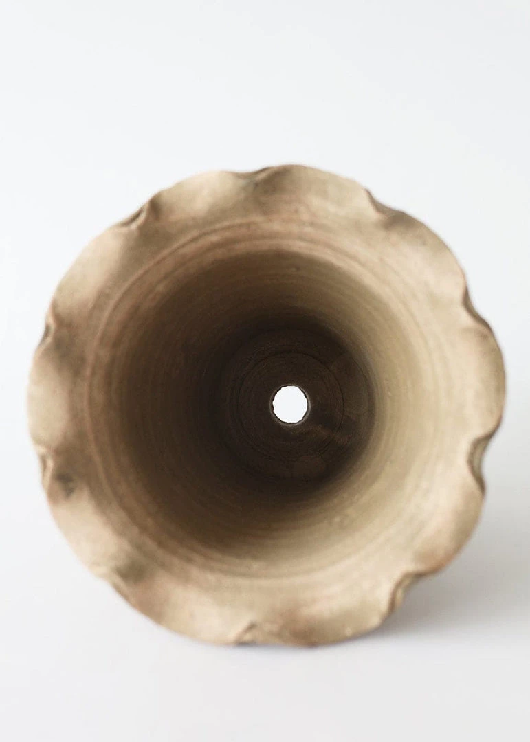 Find trendy handmade clay planters that have drainage, like this beautiful pot in terracotta with an aged look. The ruffled design gives it a sweet detail. Each plant pot is handcrafted and will vary slightly. NOT Frost Proof, store inside during winter months.
